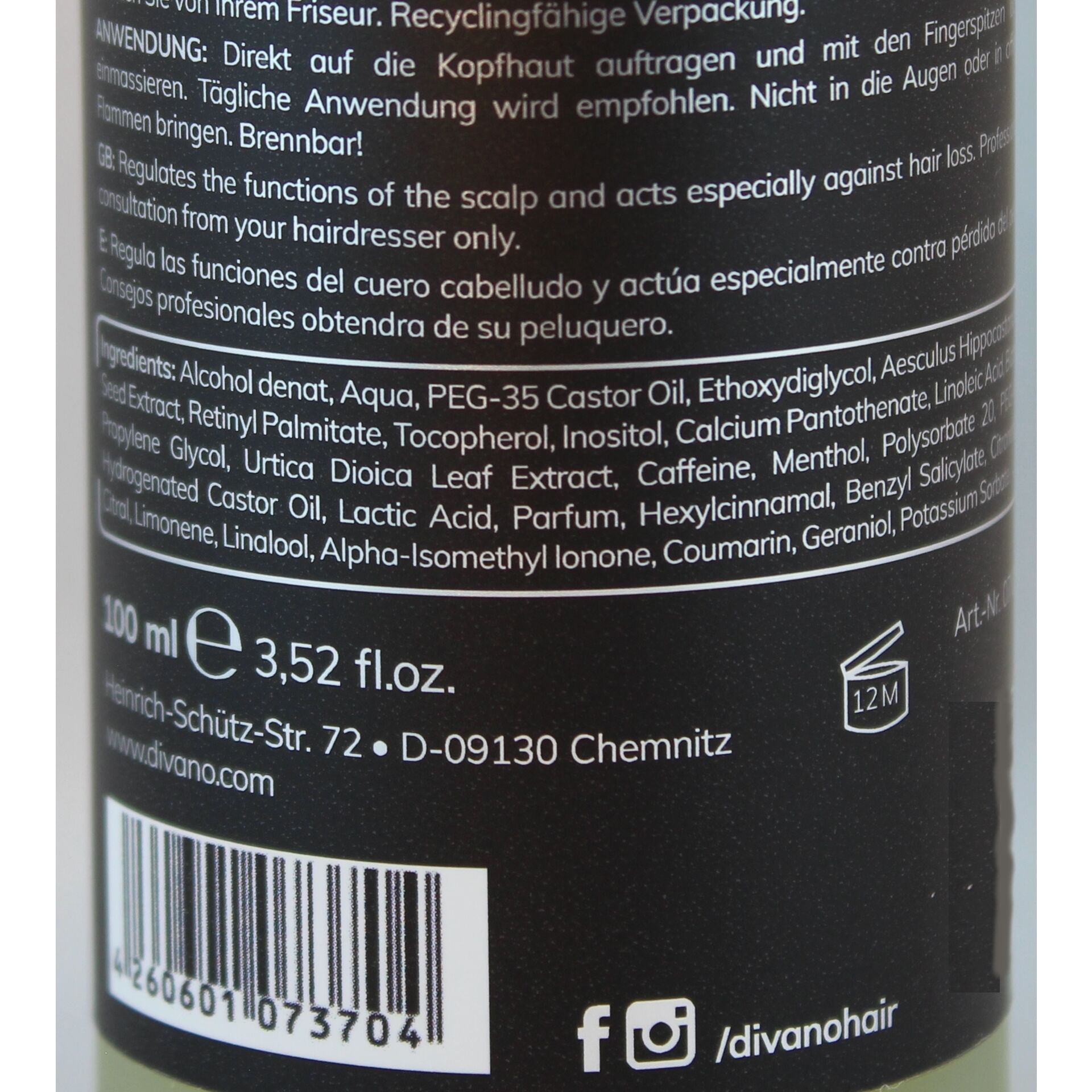 - Antimikrobielle Substanzen, Biotin Vitamin B7, Vitamin H, Vitamin E, Retinol Vitamin A1, Vitamin B5, Coffein, Roßkastanienextrakt, Brennnesselextrakt kräftigen Kopfhaut und Haarstruktur und wirken vitalisierend, durchblutungsfördernd & entzündungshemmend.